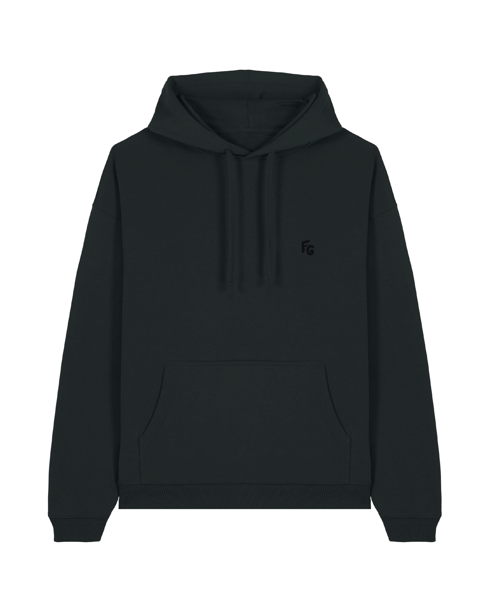 Hooded sweater, cut to a slightly oversized unisex fit. FuG signature artwork on back and FG on front screenprinted using water based ink. This hoodie is made of 400 GMS organic cotton.